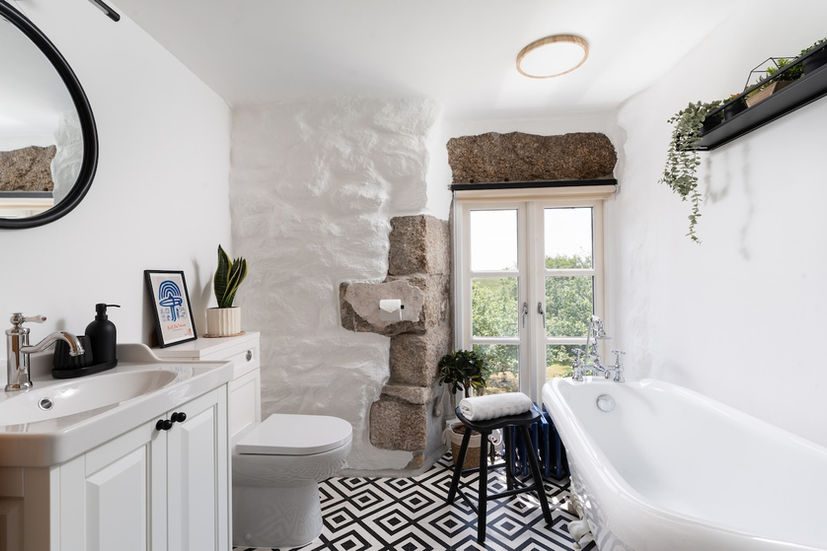 Upstairs bathroom is fitted with traditional roll top bath, large basin and toilet. Downstairs there is a shower room and separate WC.